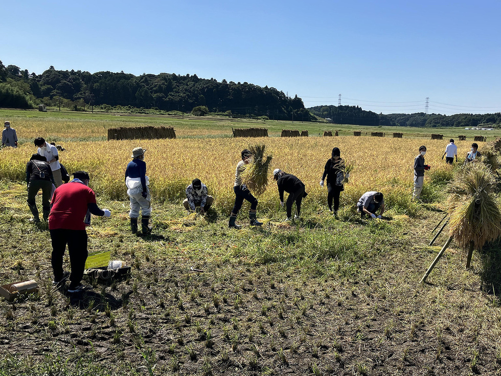 10月2日(日)、千葉県香取郡にある当財団のナチュラルファームにおいて、(株)リソー教育社友会主催による稲刈り大会を開催しました。大人と子ども、総勢45名が参加しました。