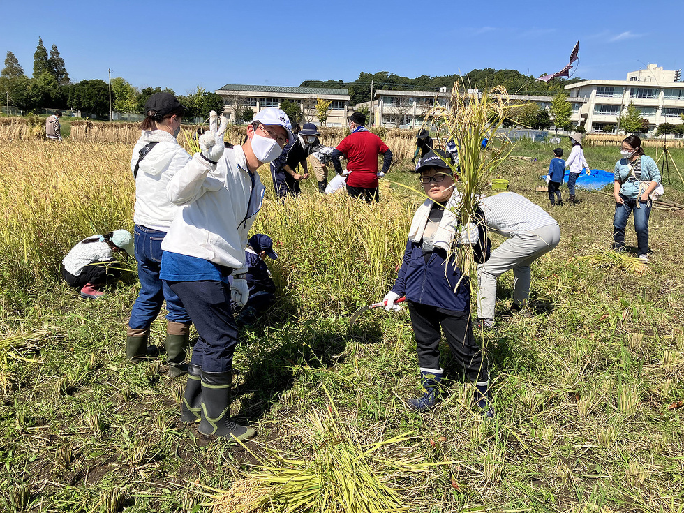 2時間足らずの体験でしたが、皆さん楽しい体験になったようです、「稲刈り、初めてだ!」と喜ぶ子どもがいたり、「もっと本格的に農業に取り組んでみたい!」と将来を思い描く若者がいたり、夢や想像が広がったようです。自然×農業が豊かな未来につながる。そんなことが感じられる有意義な1日になりました。